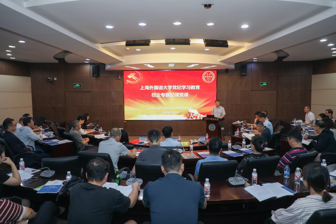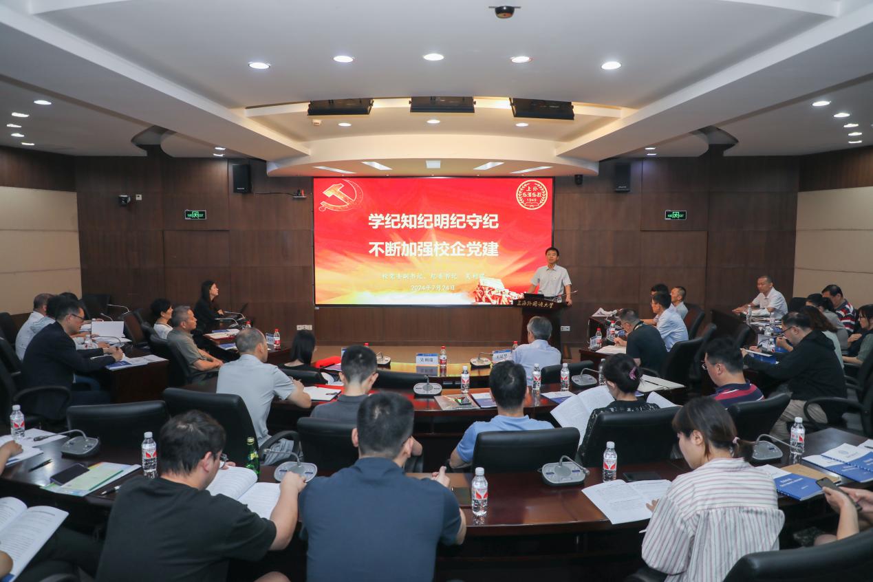 为深入学习贯彻习近平总书记关于党纪学习教育的重要讲话精神和党的二十届三中全会精神,把集中性纪律教育与经常性纪律教育结合起来,持续深化党纪学习教育,7月24日,校纪委在虹口校区举办党纪学习教育校企专题纪律党课,校党委副书记、纪委书记吴利瑞以《学纪知纪明纪守纪 不断加强校企党建》为题讲授纪律党课,校纪委副书记、纪委办公室主任、监察处处长王斌华主持会议。